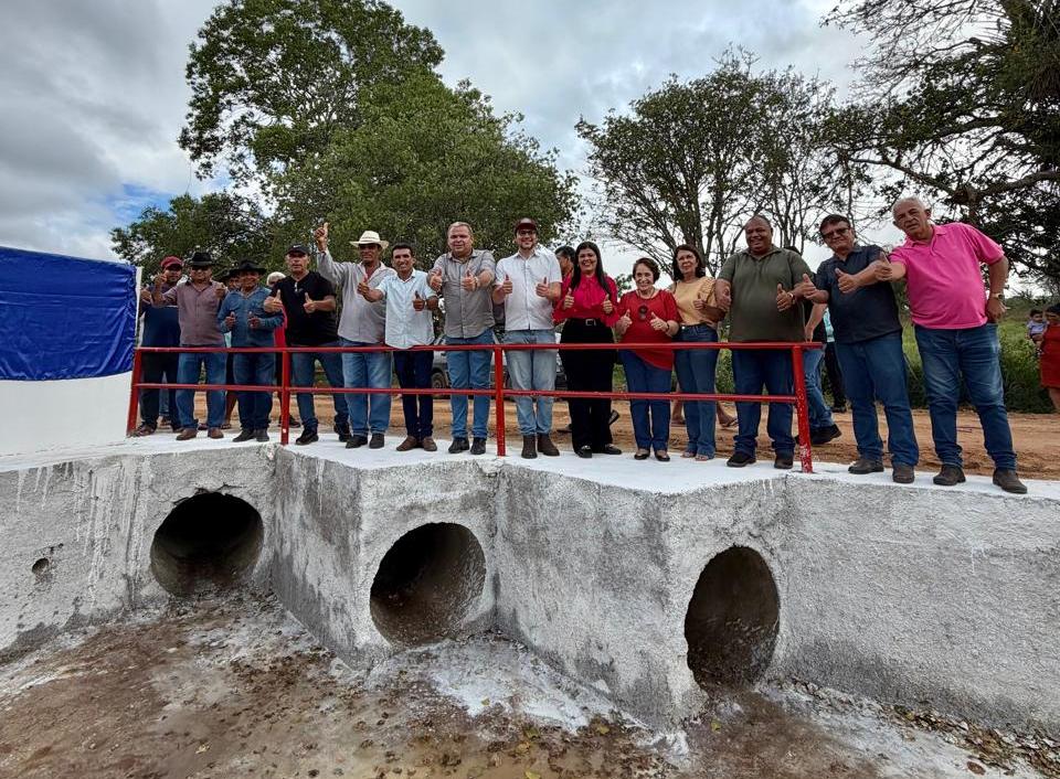 Dando sequência às atividades, a gestão municipal realizou a entrega de quatro passagens molhadas na zona rural, beneficiando os moradores dos sítios Salobinho, Olho D’Água Grande e Jacaré. As estruturas são fundamentais para garantir o deslocamento da população, especialmente nos períodos chuvosos.