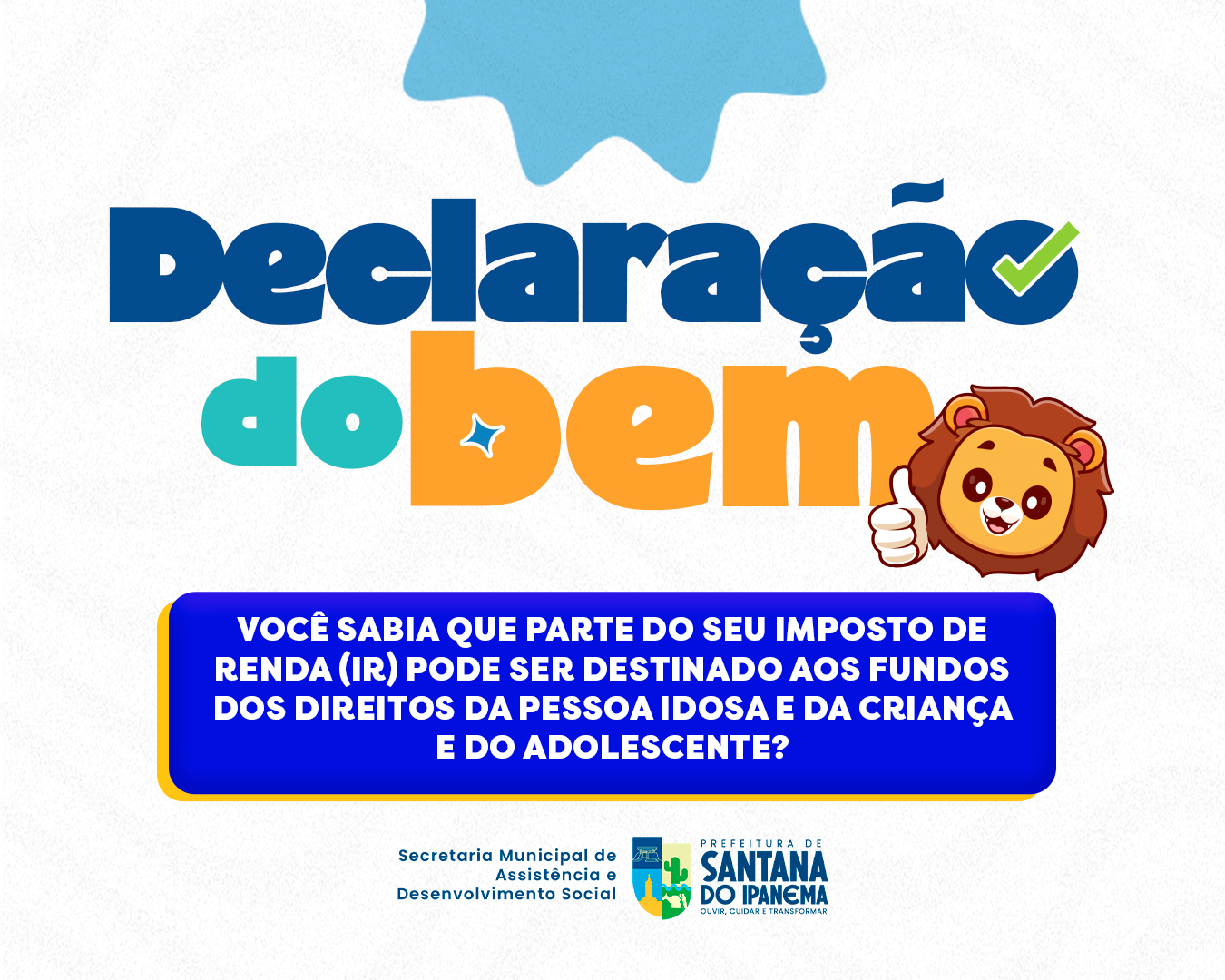 A Prefeitura de Santana do Ipanema está mobilizando a população para transformar um gesto simples, a declaração do Imposto de Renda, em um ato de solidariedade. Por meio da destinação de parte do imposto devido, os contribuintes podem ajudar diretamente projetos que atendem crianças, adolescentes e idosos do município.